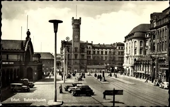 Ak Erfurt in Thüringen, Bahnhofsplatz