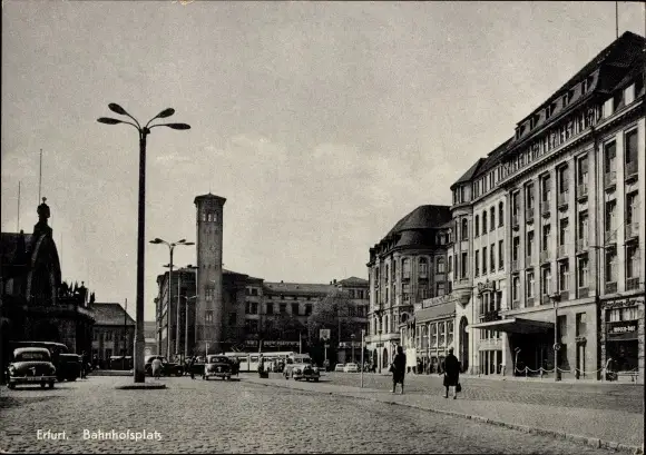 Ak Erfurt in Thüringen, Bahnhofsplatz