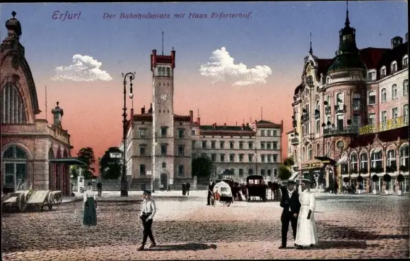 Ak Erfurt in Thüringen, Bahnhofsplatz, Haus Erfurterhof