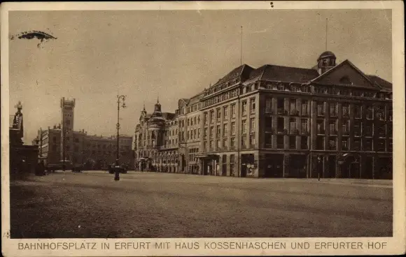 Ak Erfurt in Thüringen, Bahnhofsplatz, Haus Kossenhaschen, Erfurter Hof