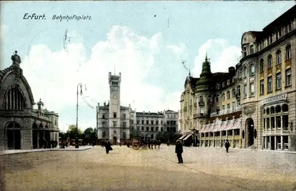 Ak Erfurt in Thüringen, Bahnhofsplatz, Hotel Erfurter Hof