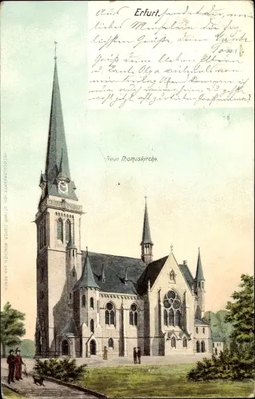 Ak Erfurt in Thüringen, Blick auf die neue Thomaskirche, Hund, Fensterrose