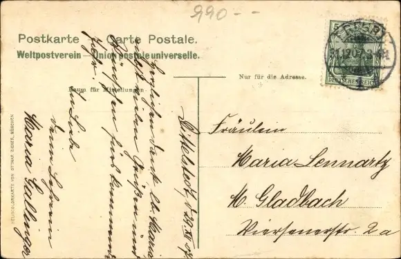 Zustand, siehe Scan, gelaufen, 1907 - ca 14 cm X 9 cm