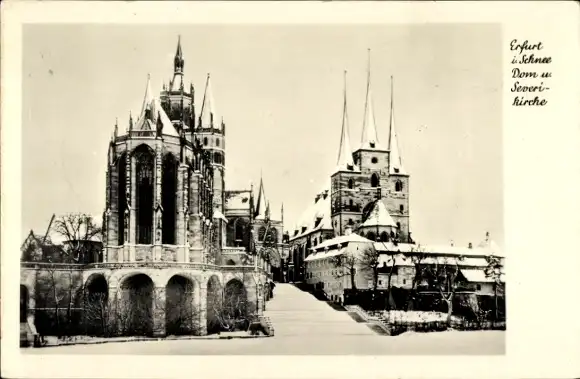 Ak Erfurt in Thüringen, Dom, Severikirche, Winter