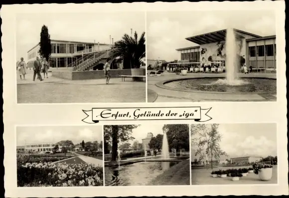 Ak Erfurt in Thüringen, Geländ der iga, Springbrunnen, Park