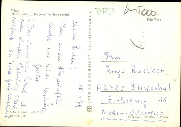 Ak Erfurt in Thüringen, HO Gaststätte Hubertus im Steigerwald