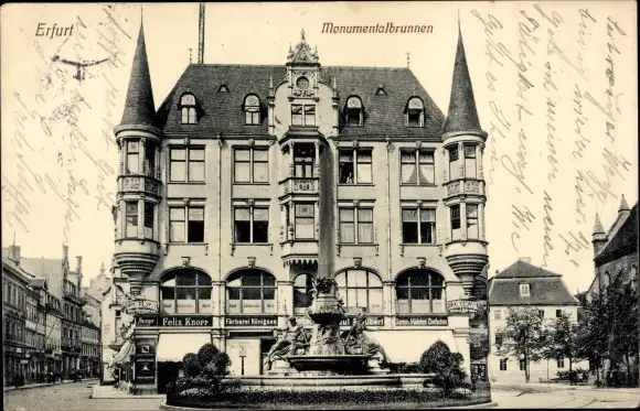 Ak Erfurt in Thüringen, Monumentalbrunnen, Geschäft Felix Knorr