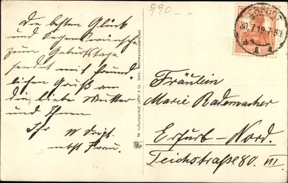 Zustand, siehe Scan, gelaufen, 1919 - ca 14 cm X 9 cm