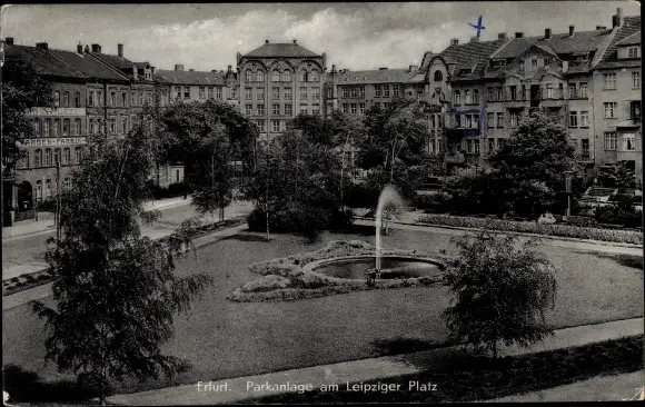 Ak Erfurt in Thüringen, Parkanlage am Leipziger Platz, Springbrunnen
