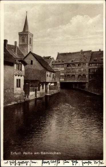 Ak Erfurt in Thüringen, Partie am Dämmchen, Kirchturm, Häuser