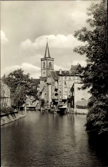 Ak Erfurt in Thüringen, Partie an der Gera, Kirchturm
