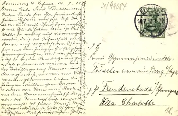 Zustand, siehe Scan, gelaufen, 1913 - ca 14 cm X 9 cm