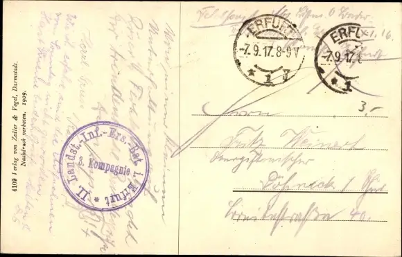 Zustand, siehe Scan, gelaufen, 1917 - ca 14 cm X 9 cm
