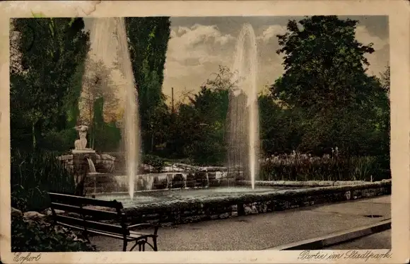 Ak Erfurt in Thüringen, Stadtpark, Springbrunnen