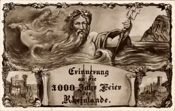 Ak Erinnerung an die 1000 Jahr Feier der Rheinlande, Vater Rhein, Kölner Dom