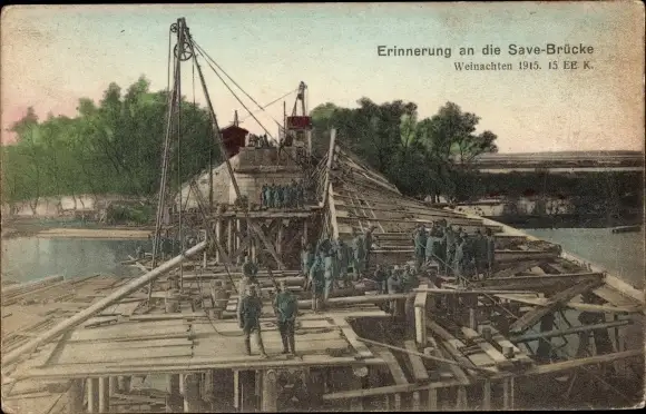 Ak Erinnerung an die Save Brücke, Brückenbau, I WK