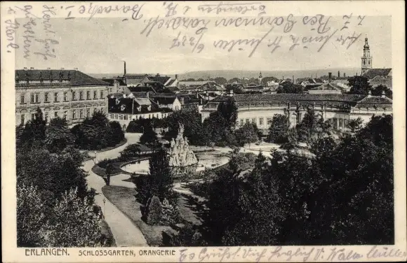 Ak Erlangen in Mittelfranken Bayern, Blick in den Schlossgarten, Orangerie