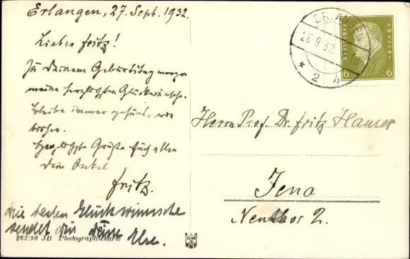Zustand, siehe Scan, gelaufen, 1932 - ca 14 cm X 9 cm