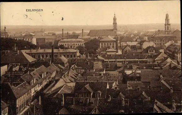 Ak Erlangen in Mittelfranken Bayern, Gesamtansicht, Kirche