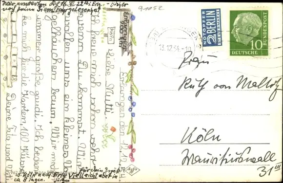 Zustand, siehe Scan, gelaufen, 1954 - ca 14 cm X 9 cm