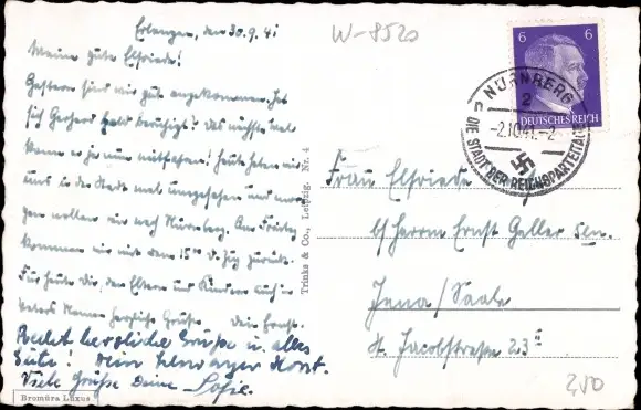 Zustand, siehe Scan, gelaufen, 1941 - ca 14 cm X 9 cm