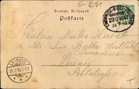 Zustand, siehe Scan, gelaufen, 1898 - ca 15 cm X 9 cm