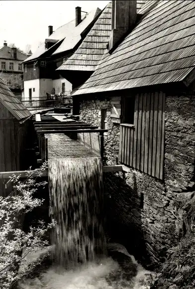 Ak Erlbach (bei Rochlitz) Colditz in Sachsen, Wasserfall, Fachwerkhäuser