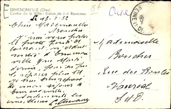 Ak Ermenonville Oise, Stadtzentrum, Statue