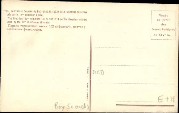 Ak Eroberte Fahne, Pfadfinder, drapeau d'Infanterie Bavaroise, Inf. Rgt. VI 132