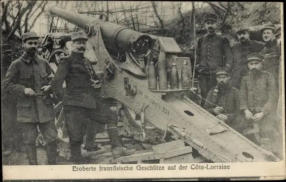 Ak Eroberte französische Geschütze auf der Cote Lorraine, 1. WK