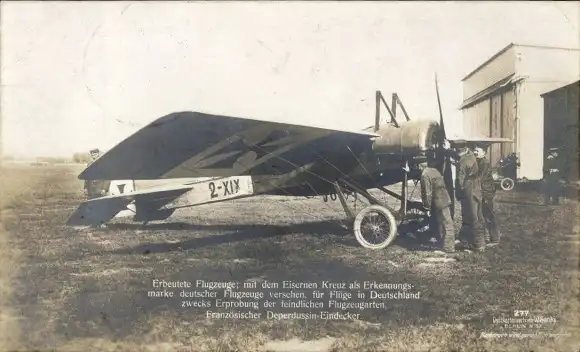 Ak Eroberter französischer Eindecker, Militärflugzeug, Kriegsbeute, I. WK