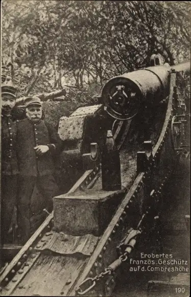 Ak Erobertes französisches Geschütz auf der Combreshöhe, I WK
