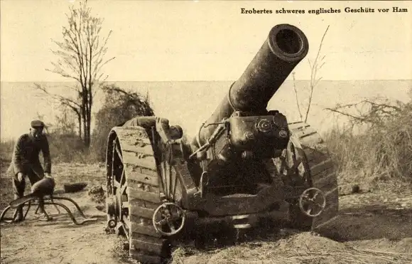 Ak Erobertes schweres englisches Geschütz vor Ham, Deutsche Soldaten