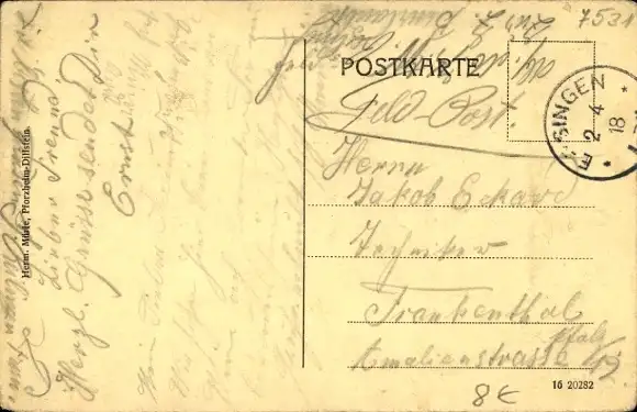 Zustand, siehe Scan, gelaufen, 1918 - ca 14 cm X 9 cm