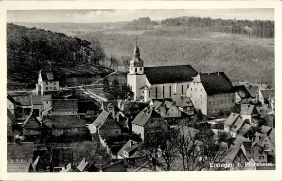 Ak Ersingen Kämpfelbach in Baden, Teilansicht, Kirche