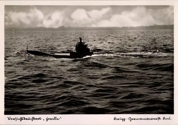 Ak Erstes Versuchs-Tauchboot Forelle, U-Boot, Krupp Germaniawerft Kiel