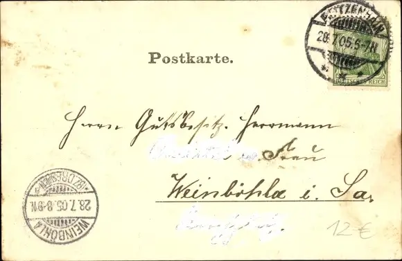 Zustand, siehe Scan, gelaufen, 1905 - ca 14 cm X 9 cm