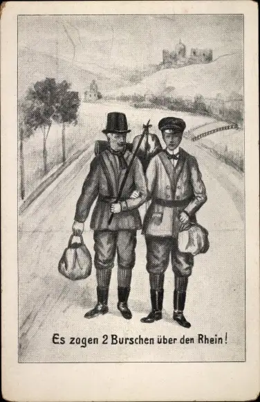 Ak Es zogen 2 Burschen über den Rhein, Kaiser Wilhelm II., Kronprinz Wilhelm, Exil