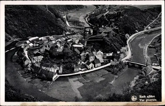 Ak Esch sur Sure Esch an der Sauer Luxemburg, vue generale, Fluss, Luftansicht
