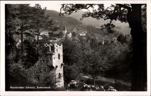 Ak Eschenbach Pommelsbrunn in Mittelfranken, Hersbrucker Schweiz, Ruine, Kühe