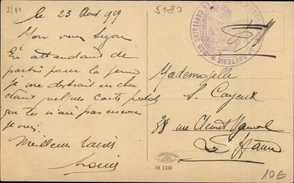 ungelaufen, Rückseite beschrieben, datiert 1919, sehr guter Zustand