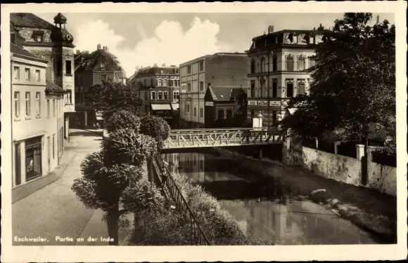 Ak Eschweiler in Nordrhein Westfalen, Partie an der Inde, Brücke