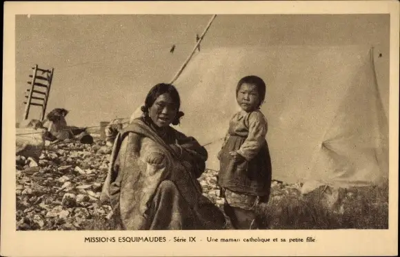Ak Eskimo Missions, Eine katholische Mutter und ihr kleines Mädchen
