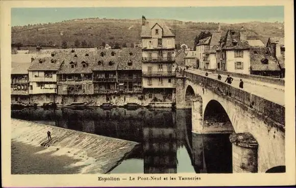 Ak Espalion Aveyron, Pont-Neuf, les Tanneries