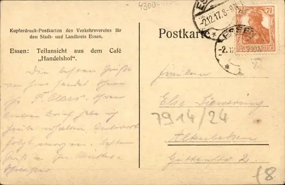 Ak Essen im Ruhrgebiet, Café Handelshof, Innenansicht