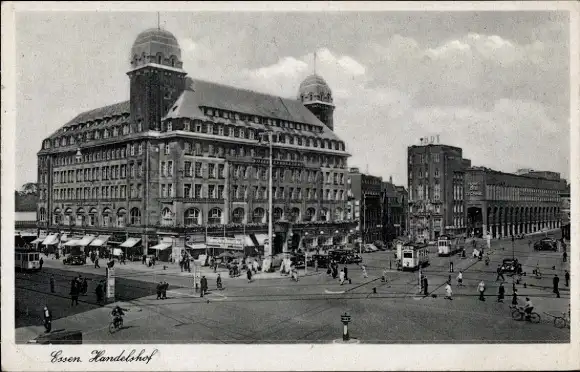 Ak Essen im Ruhrgebiet, Handelshof, Straßenbahnen