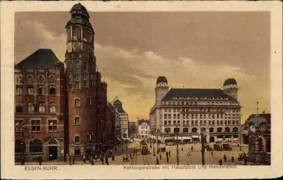 Ak Essen im Ruhrgebiet, Kettwigerstraße, Hauptpost, Handelshof, Straßenbahn
