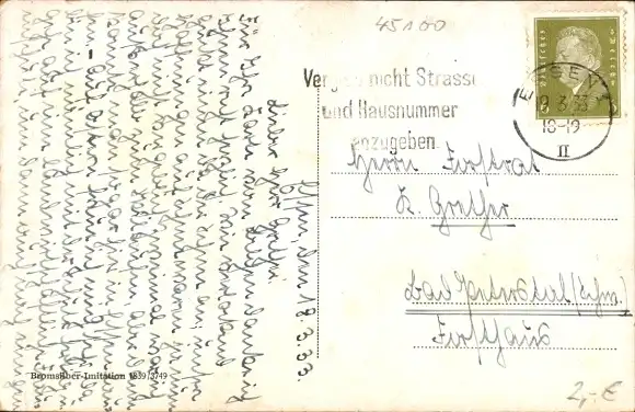 Zustand, siehe Scan, gelaufen, 1933 - ca 14 cm X 9 cm