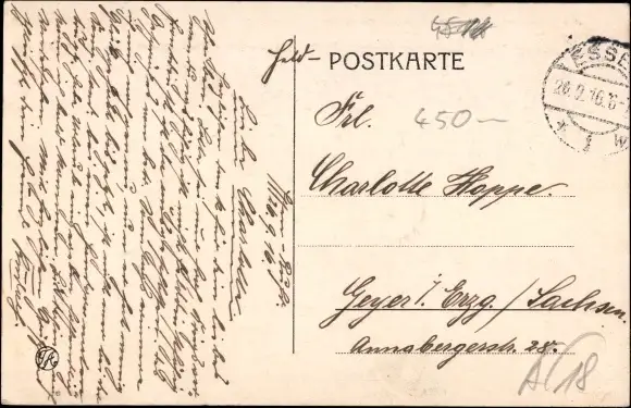 Zustand, siehe Scan, gelaufen, 1916 - ca 14 cm X 9 cm