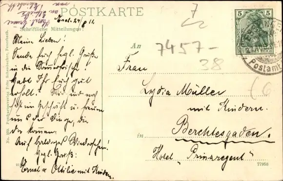 Zustand, siehe Scan, gelaufen, 1911 - ca 14 cm X 9 cm